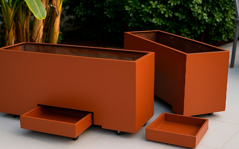 Floreiras Fibra de Vidro com Gavêtas e Rodízios